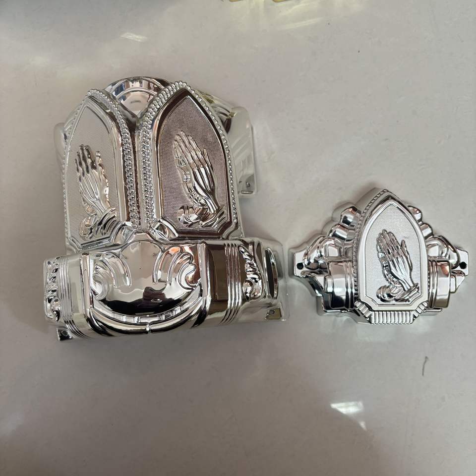 Accessoires de quincaillerie pour cercueil : Plaque de motif de main remplaçable modèle 15D, en plastique durable, pour coin de cercueil funéraire