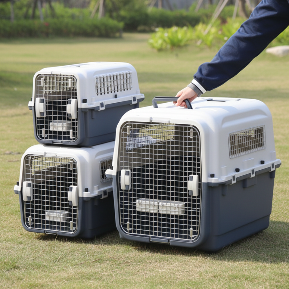 Cage de transport pour animaux de compagnie en plastique rigide rectangulaire modèle 450 avec fenêtre en fer pour bagages à main pour chat/chien