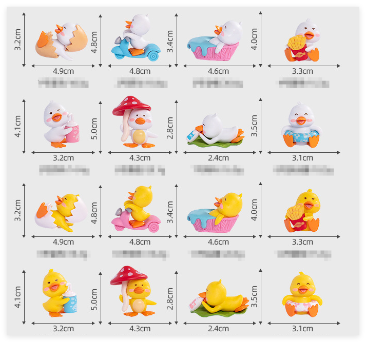 Petit modèle miniature animaux 3D dessin animé canard figurines de poupée à collectionner Mini Pvc enfants jouets pour bombe de bain petit ornement