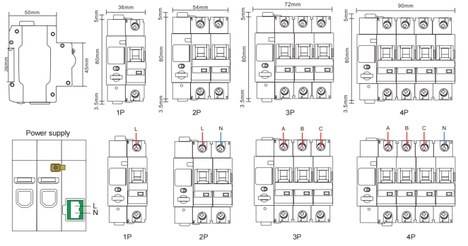 No. de pôles:1P,1P + N, 2P,3P,4P
