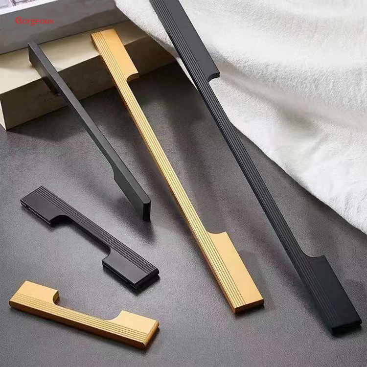 Moden Poignée d'armoire Tiroir de cuisine Alliage d'aluminium Placard Armoire Armoire Doré Noir Meubles modernes Poignées et boutons