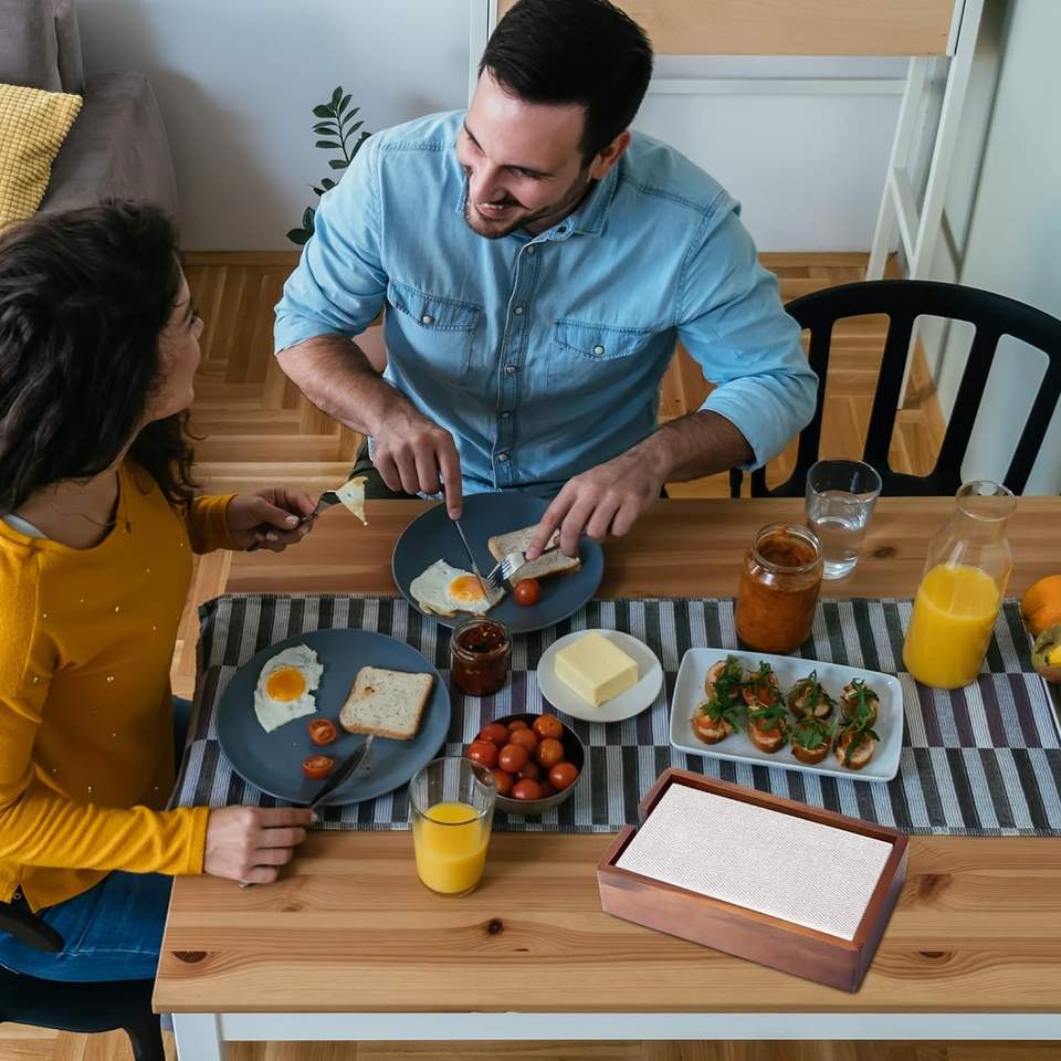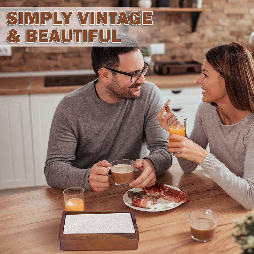 Porte-serviettes en bambou en bois d'acacia rectangulaire moderne de 10 pouces avec organisateur de papier de soie en rotin et marbre pour table de cuisine
