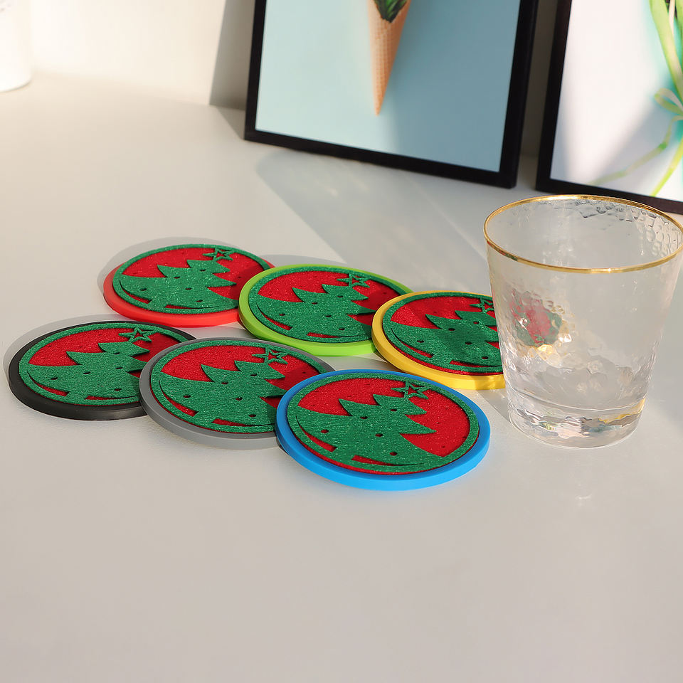 Dessous de verre rond en feutre de Noël de couleur moderne de 10 cm avec support antidérapant résistant à la chaleur durable personnalisable Design durable
