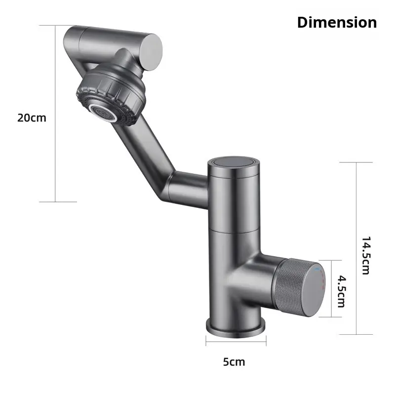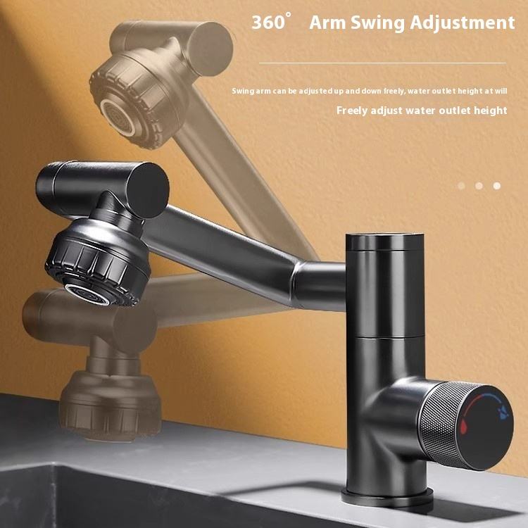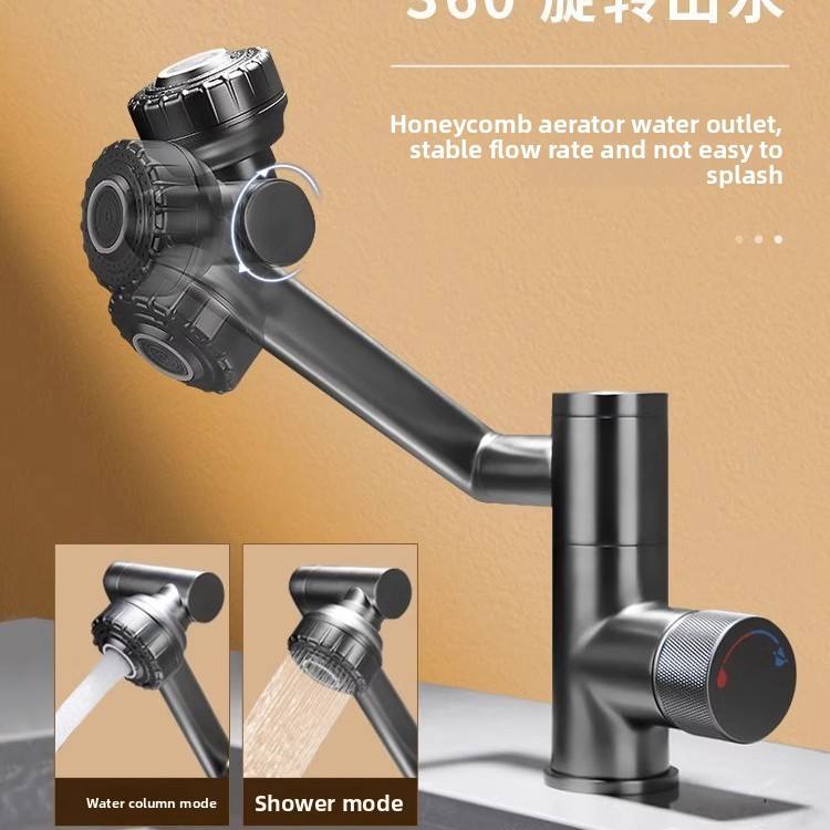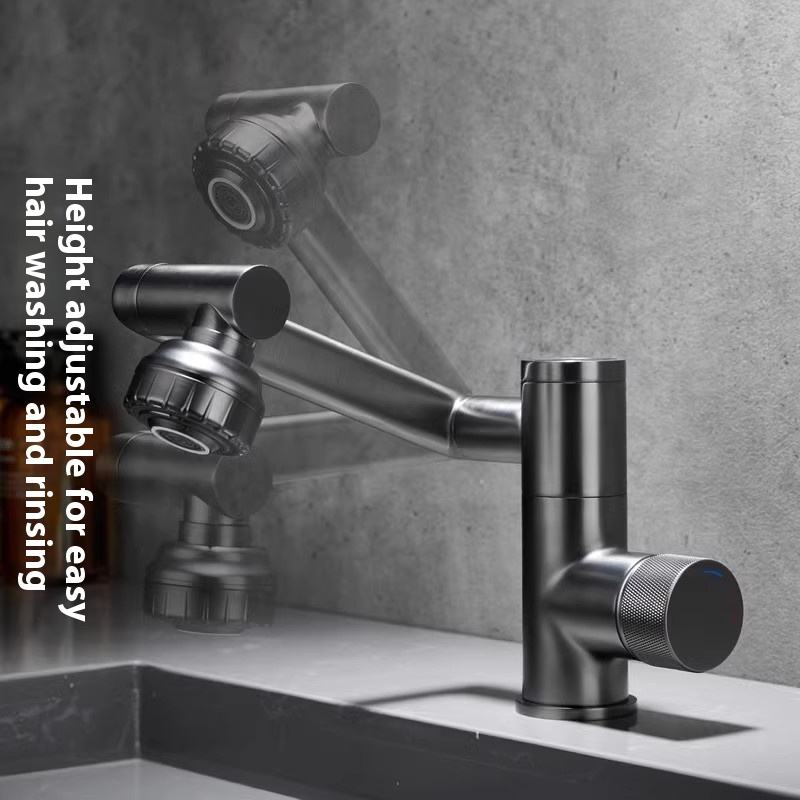Robinet de salle de bain moderne en plastique et laiton à rotation flexible à 1080 degrés Robinet de lavabo à extension rotative à bras robotisé