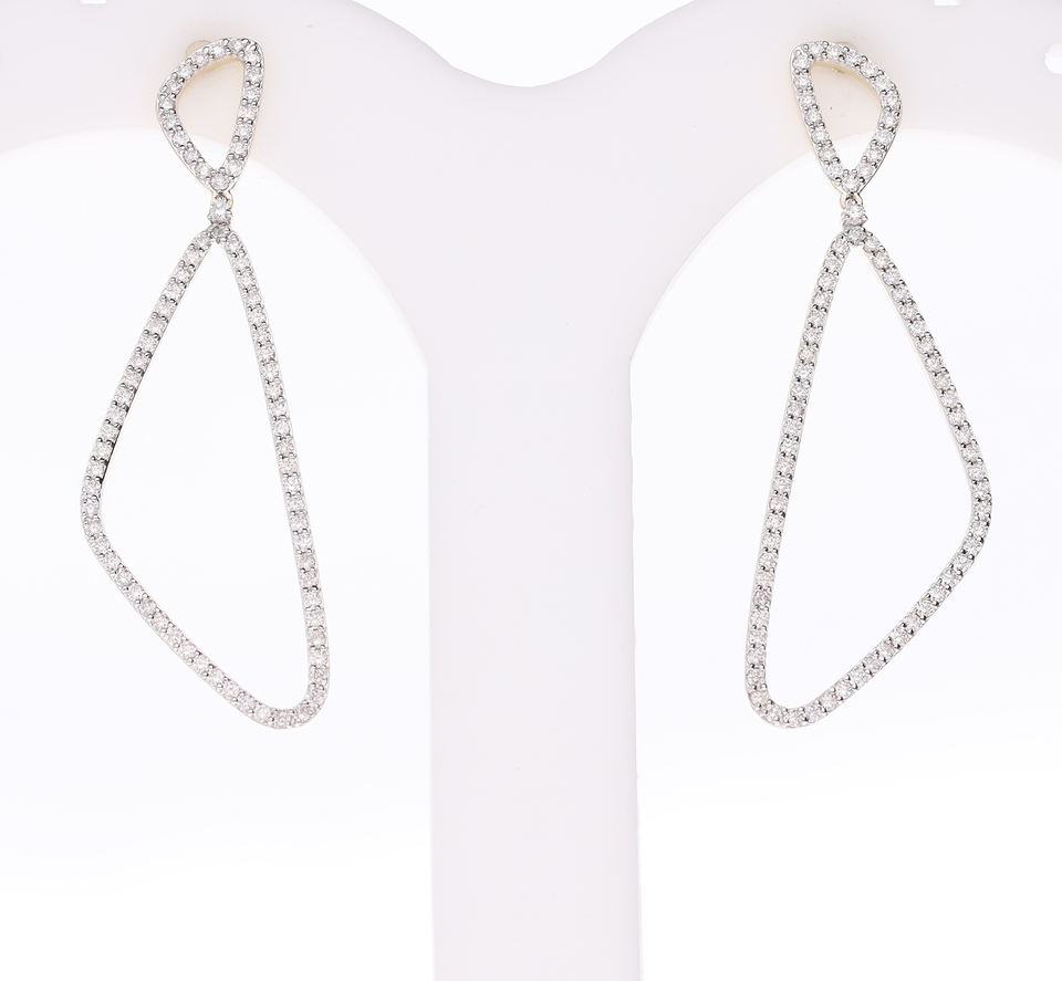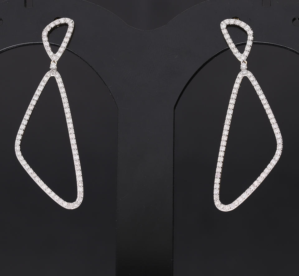 Boucles d'oreilles pendantes géométriques asymétriques modernes en or 14 carats avec diamants naturels taille brillant, design à cadre ouvert, plaqué rhodium, chic
