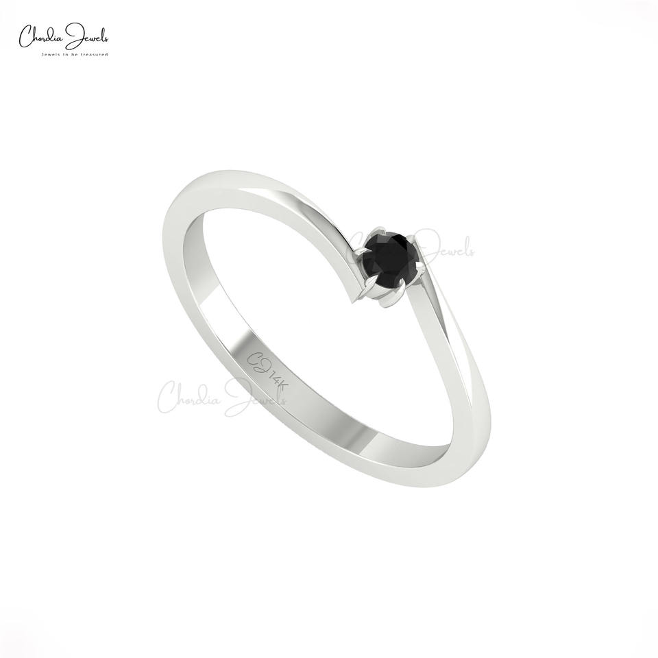 Bague solitaire moderne en or massif 14 carats avec diamant noir naturel taillé de 3mm en argent 925 anniversaires de fête de mariage en gros