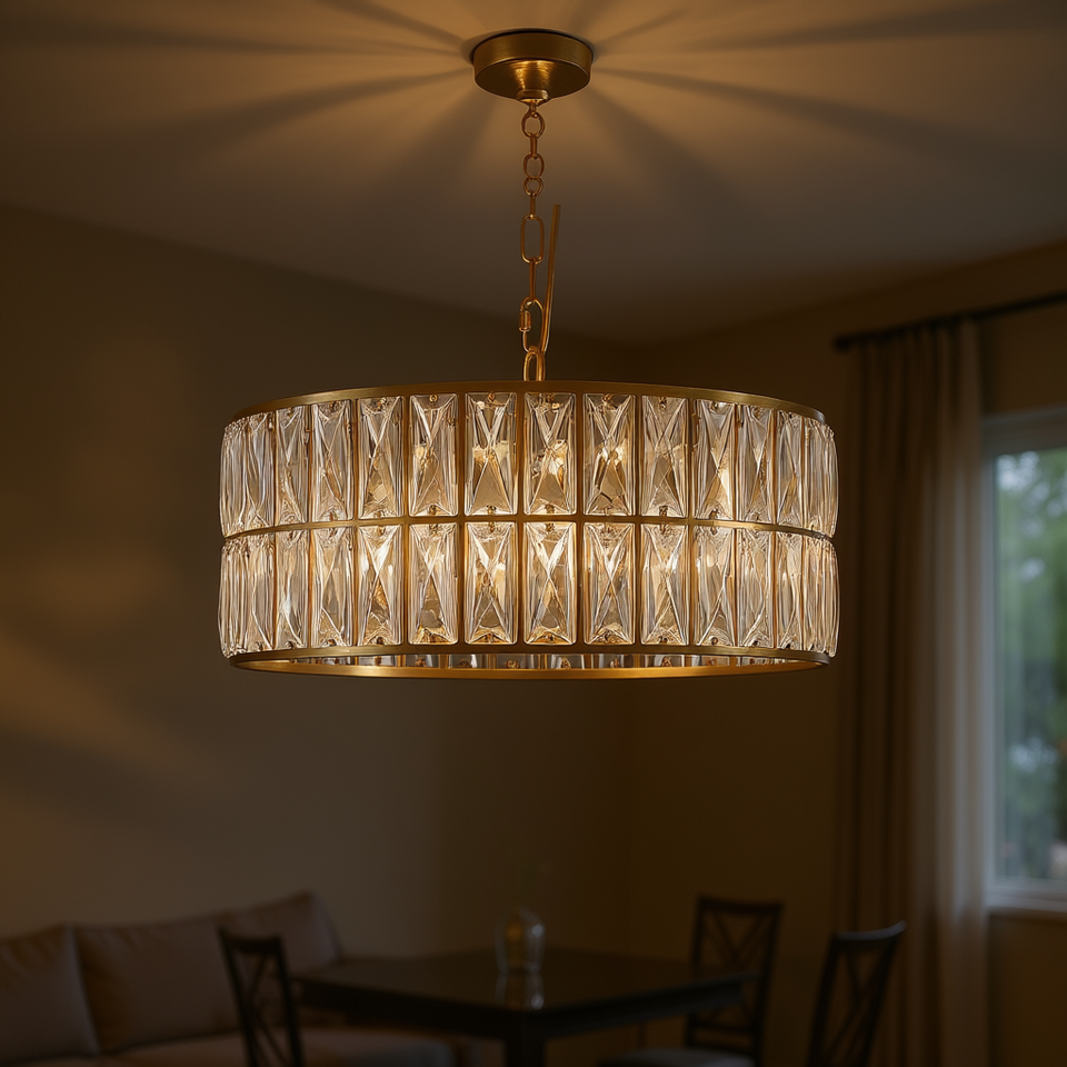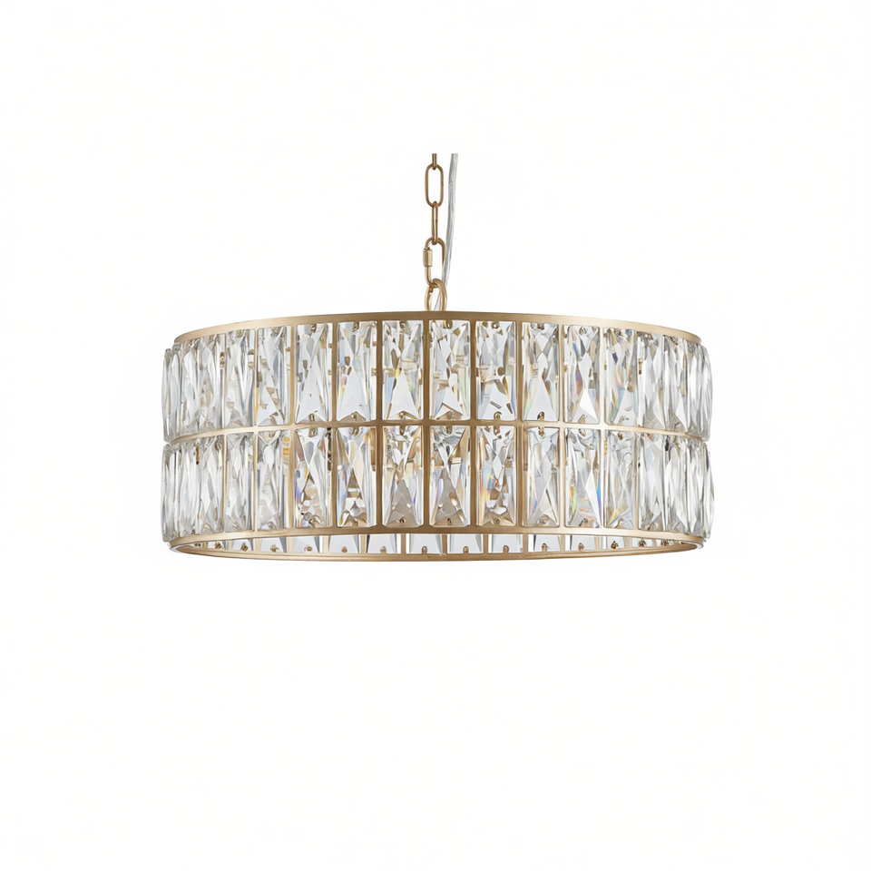 Lustre Moderne en Cristal Doré de 18 Pouces, 6 Lumières, Luminaire Suspendu pour Salon, Chambre à Coucher