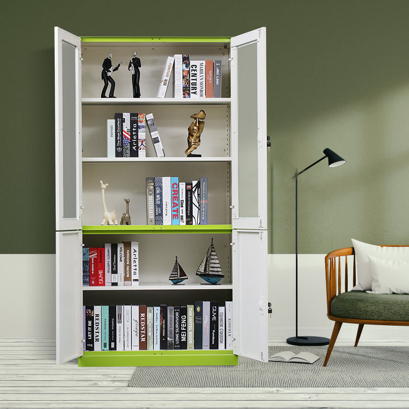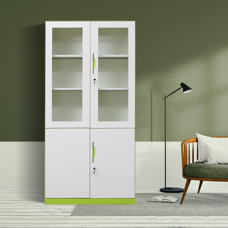 Modern 2-Door Steel Filing Cabinet Glass & Iron Locker Cupboard for Office Kitchen Hotel & Outdoor Use