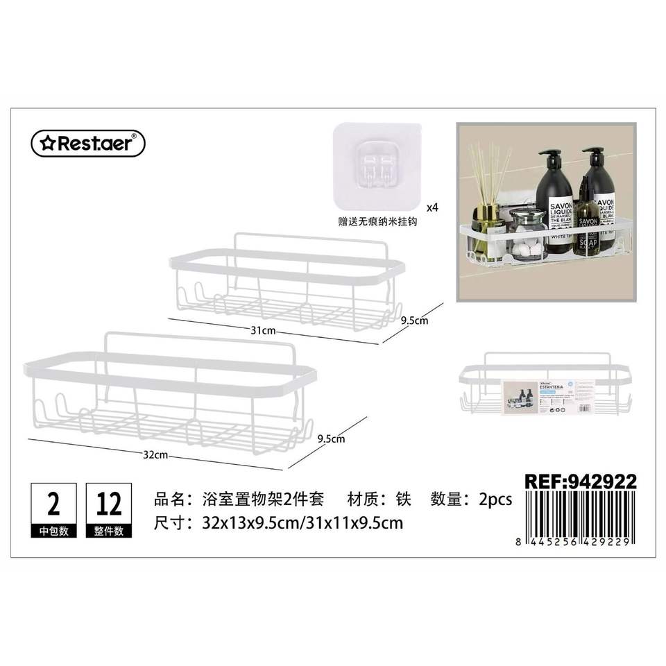 Étagère de salle de bain moderne 2 pièces finition aluminium montée en coin pour l'organisation et le stockage