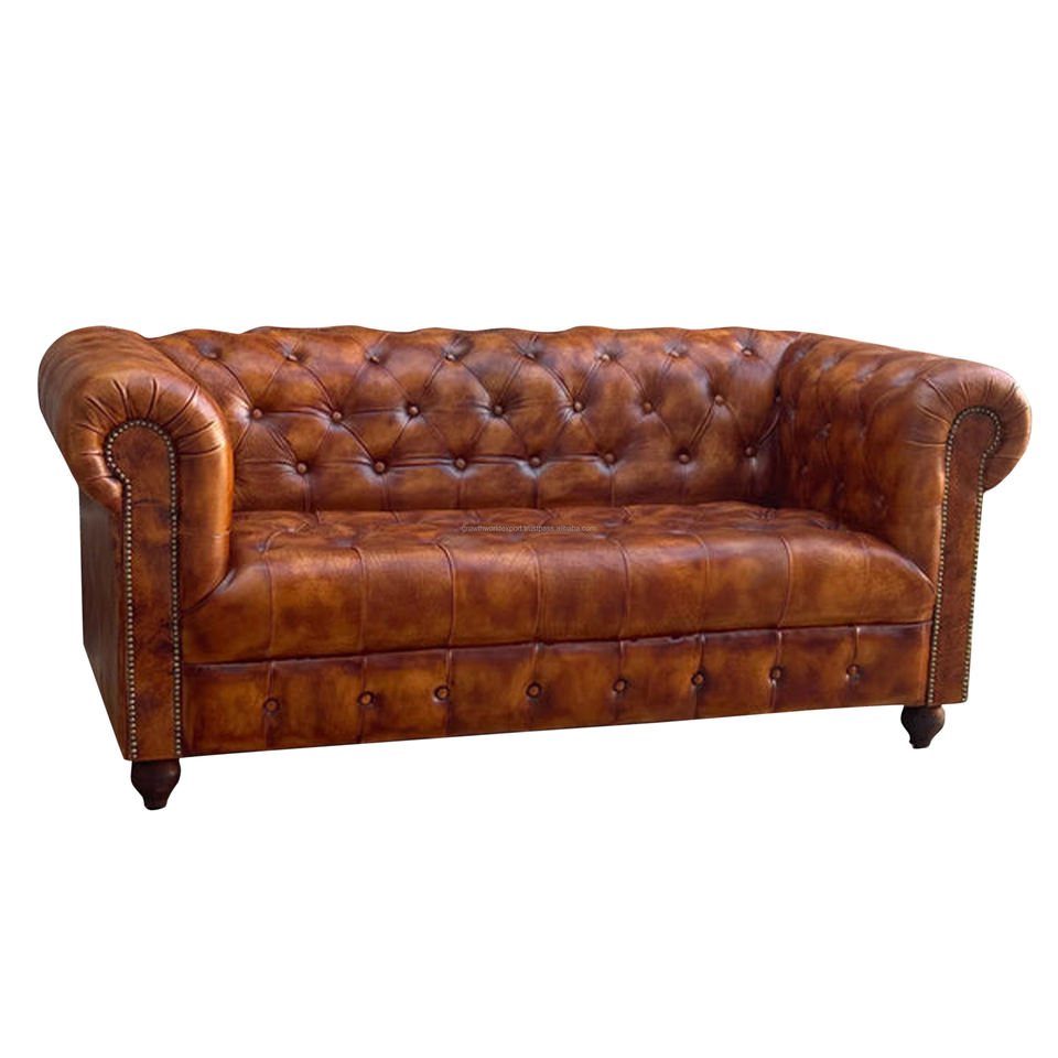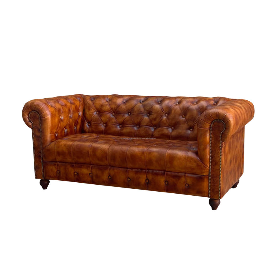 Nom du produit:Canapé 2 places en cuir de champ Chester capitonné Choco Brown