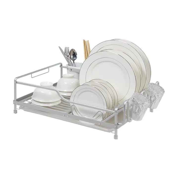 Égouttoir à vaisselle moderne à 2 niveaux avec égouttoir intégré, porte-ustensiles et support à tasses, noir, antirouille, organisateur de comptoir de cuisine