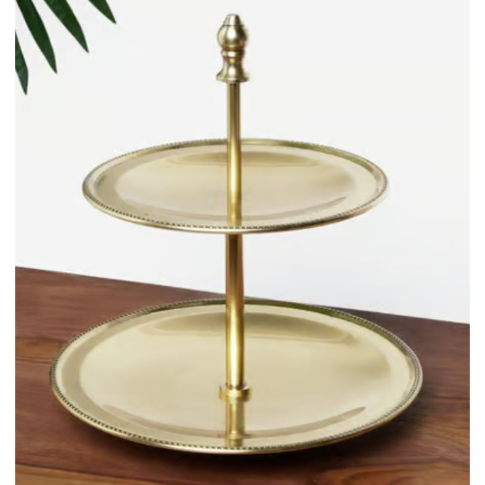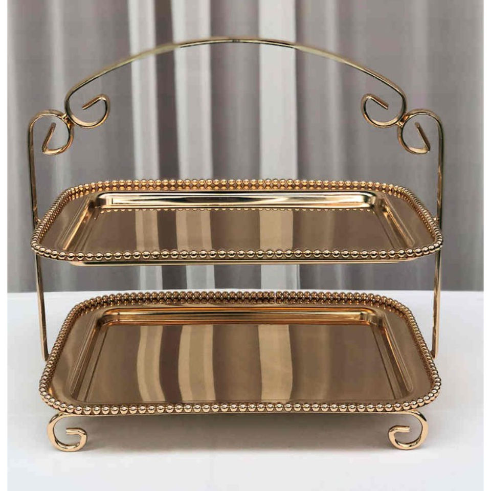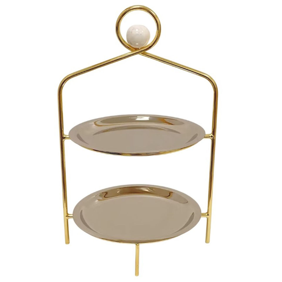 Support à gâteau moderne à 2 étages en métal doré, plateau de présentation de desserts décoratif en acier inoxydable pour mariage, fête et décoration de la maison