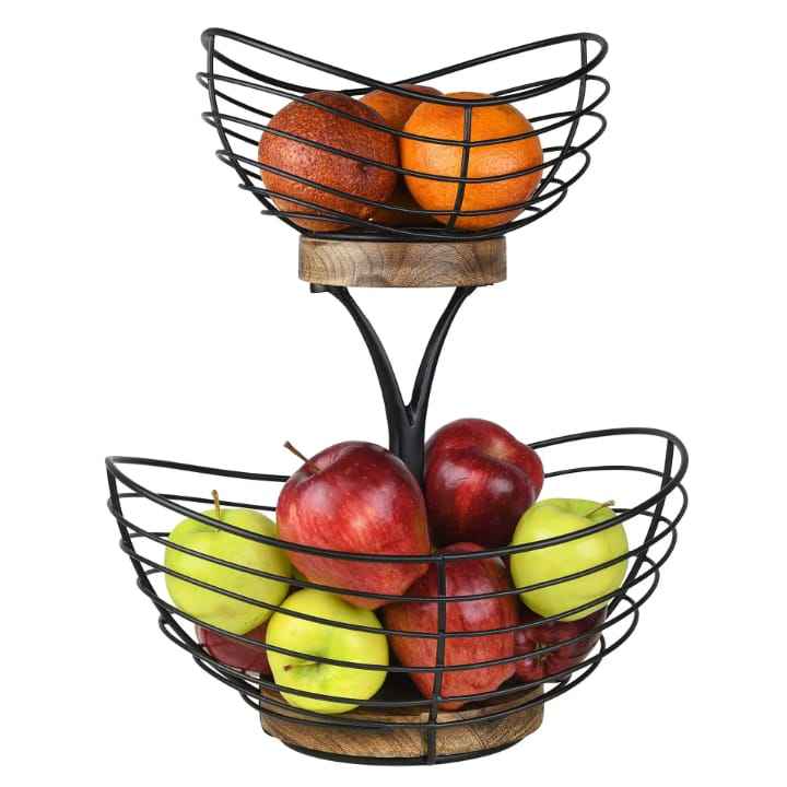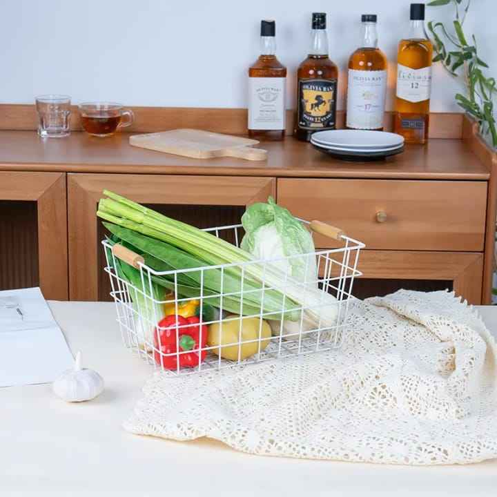 Étagère de rangement de cuisine moderne à 2 niveaux en métal blanc avec poignée en bois, support de comptoir à double niveau pour pots à épices et fruits