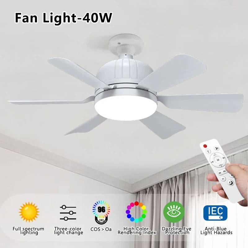 Modern 2-in-1 LED Ceiling Light with Remote Control 5 Blades AC/DC Motor Plastic Body-Fan and Lighting for Bedroom and Kitchen
