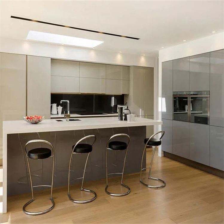 Ensemble de meubles de cuisine modernes 2024 en MDF laqué brillant, design en bois complet, élégant, armoires de cuisine brillantes