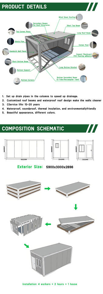 Maison conteneur moderne de 20 pieds à structure en acier extensible, cabine préfabriquée modulaire en kit, assemblage rapide, hôtel nid d'oiseau