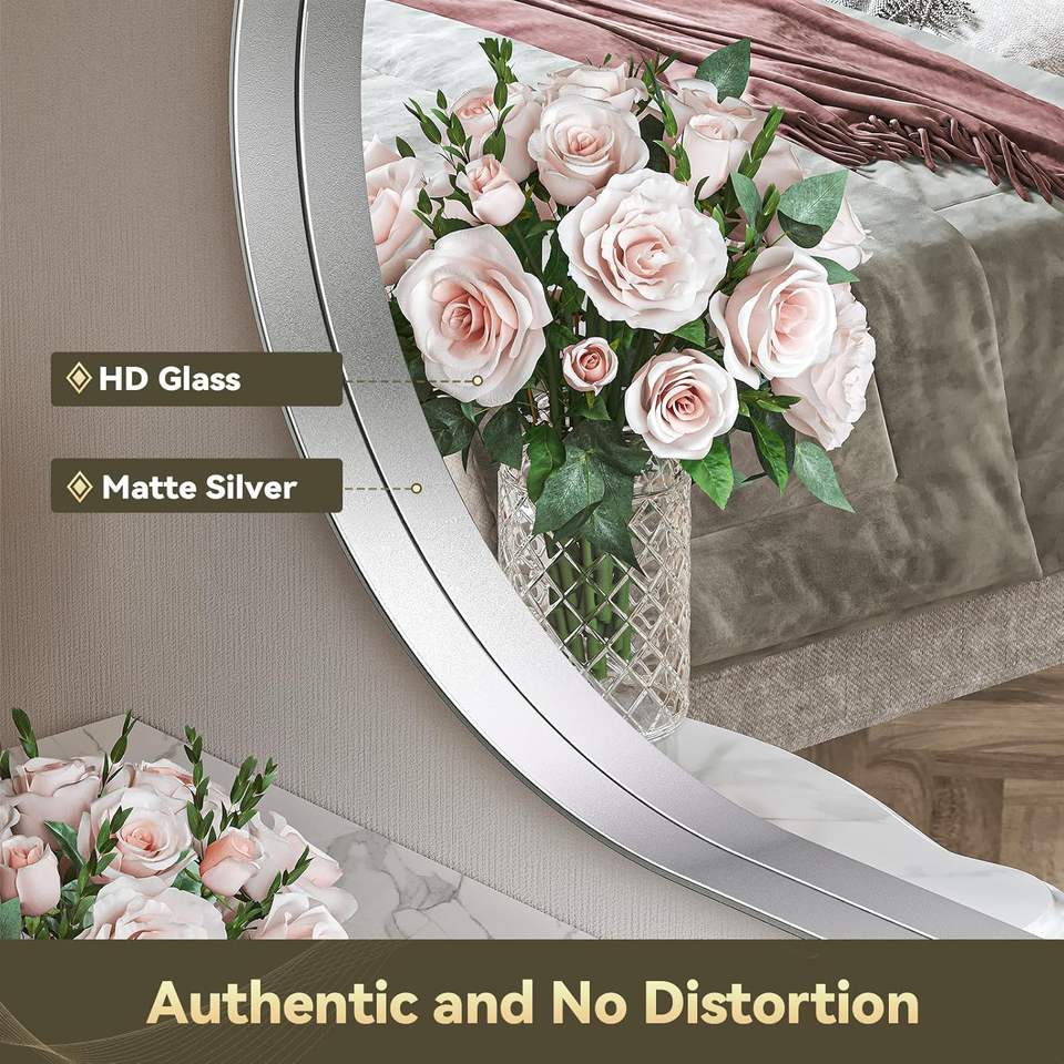 Miroir ovale argenté moderne de 20x30 pouces, éclairant la salle de bain, avec cadre en métal, forme de pilule en verre pour les hôtels