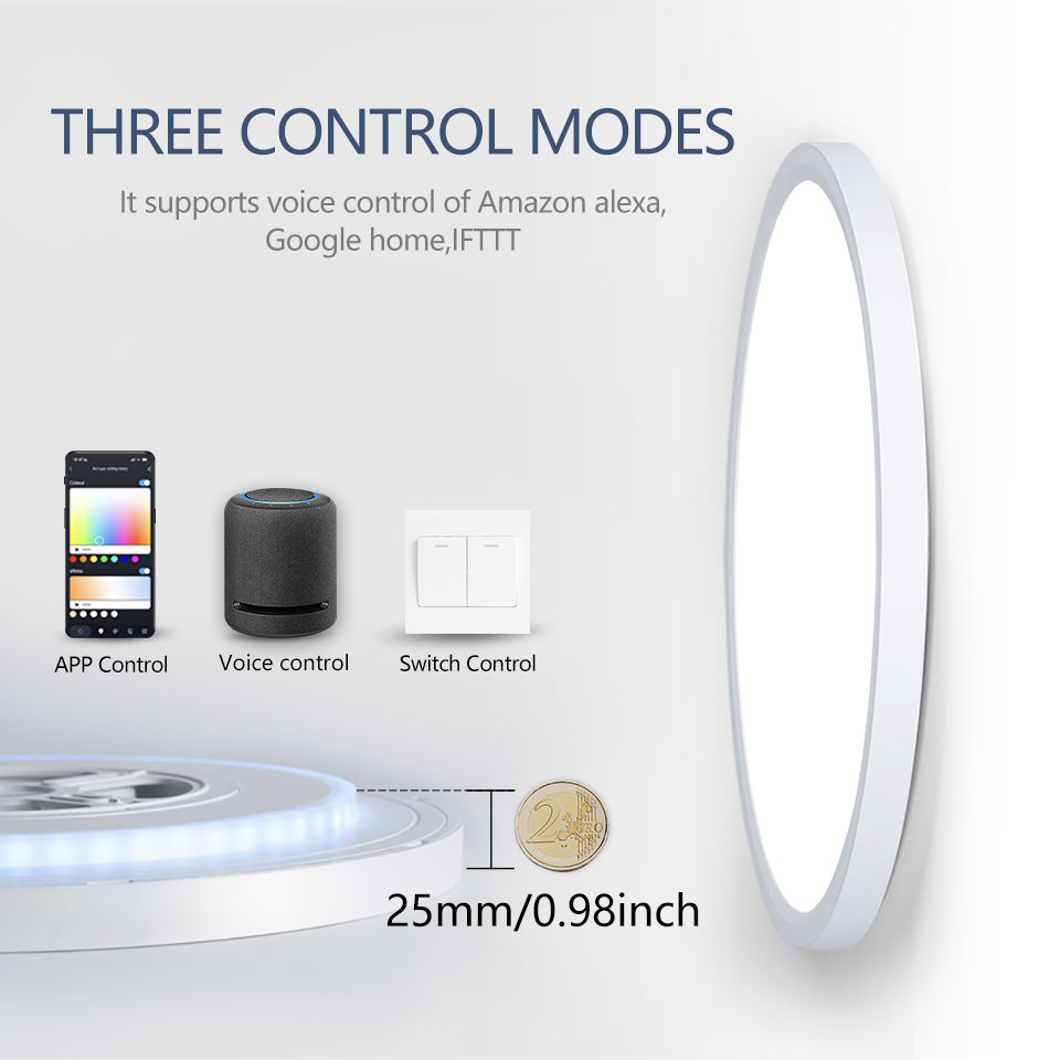 Moderne 24W Tuya Wifi Contrôle Ambiant LED Plafonnier pour Chambres Haute Qualité Éclairage Intelligent Blanc PC Ombre Direct Usine
