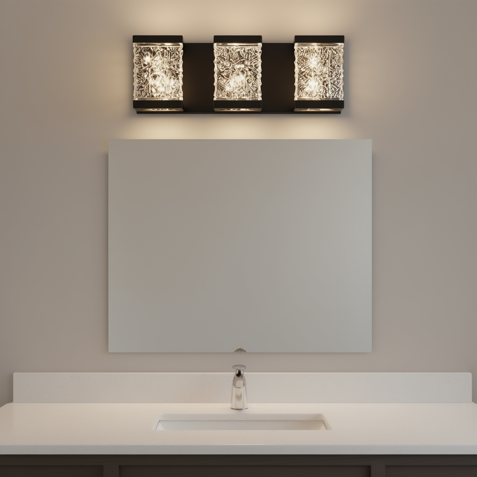 Applique murale moderne à 3 lumières LED pour salle de bain, en verre cristal noir, lampe de miroir, blanc chaud 3500K, IP44