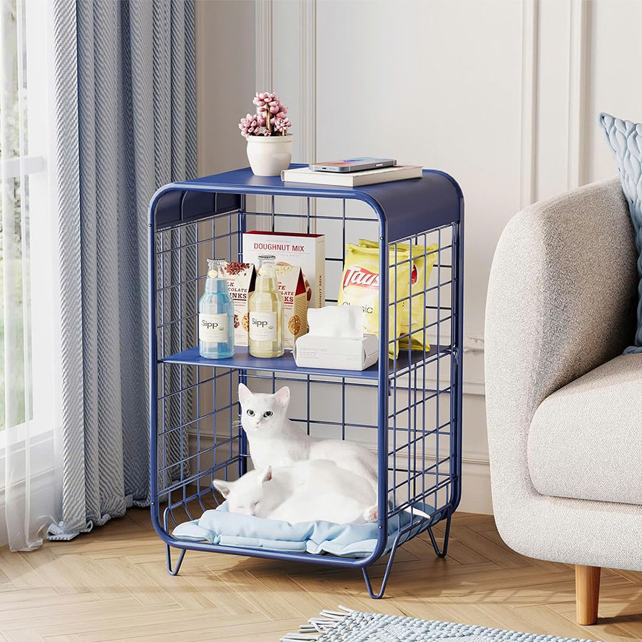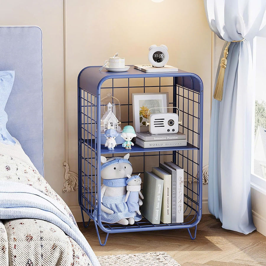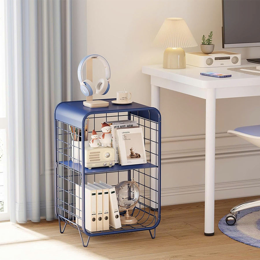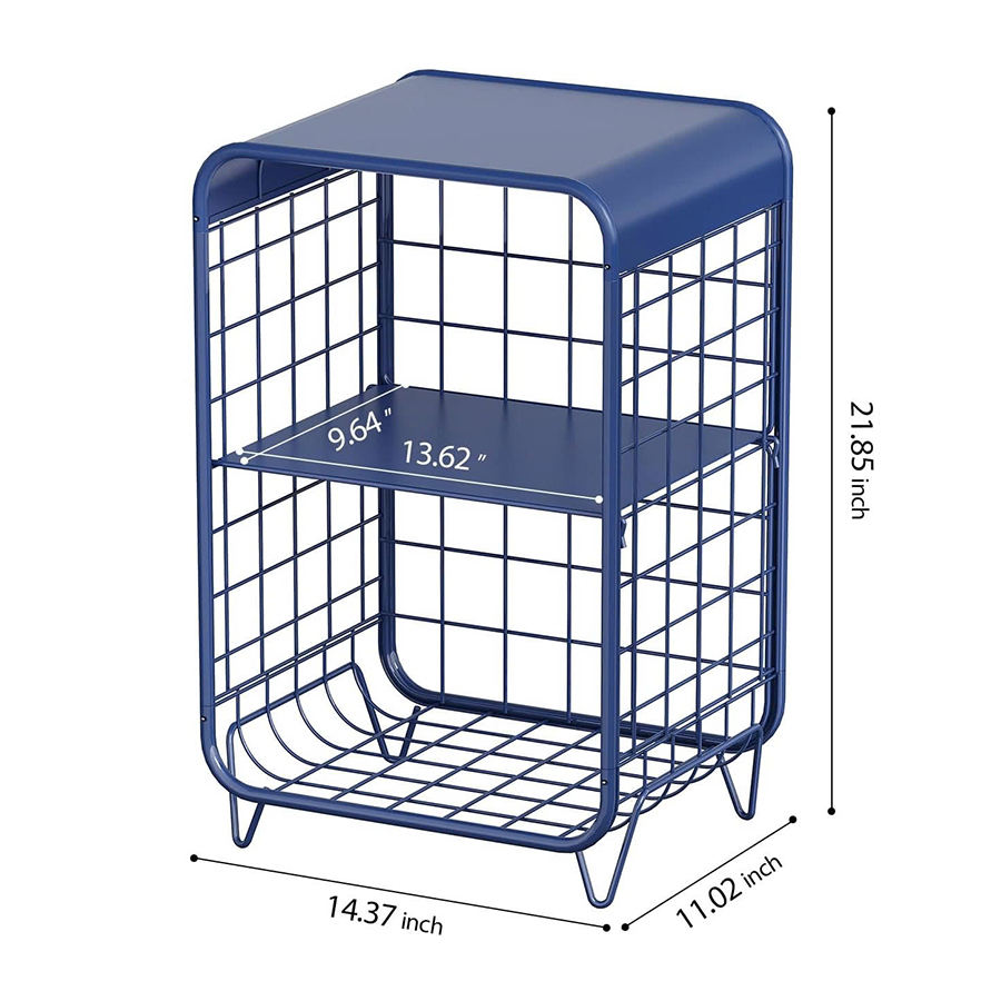 Table d'appoint moderne à 3 niveaux en métal, table de chevet mignonne avec rangement pour chambre à coucher et salon, bleu marine