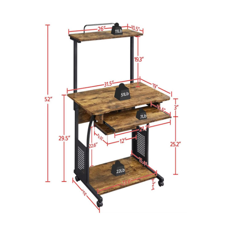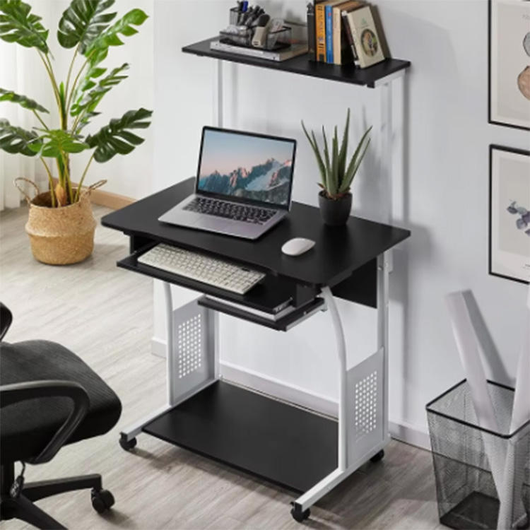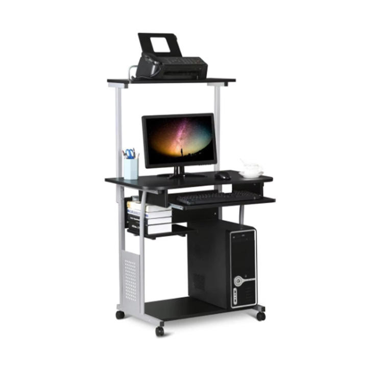 Bureau d'ordinateur roulant moderne à 3 niveaux avec plateau pour clavier et étagère pour imprimante Bureau d'ordinateur mobile pour bureau à domicile