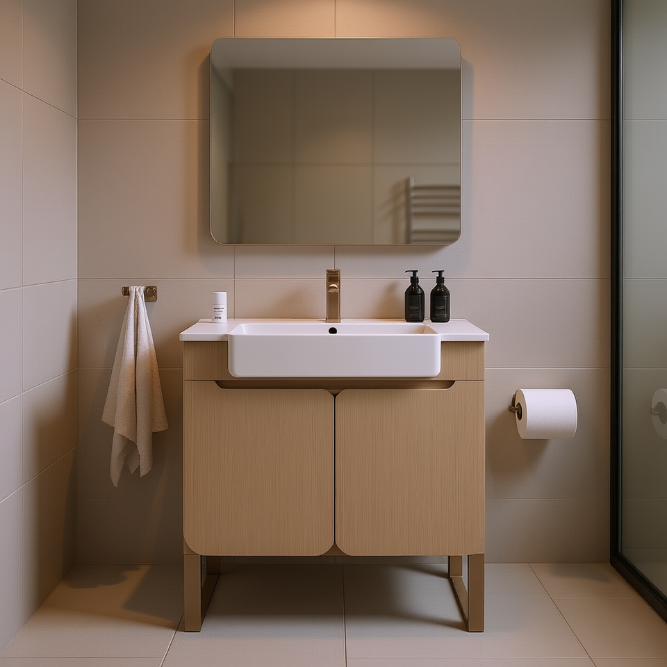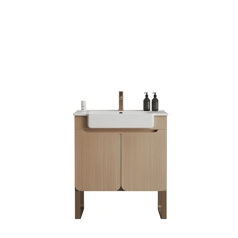 Meuble de salle de bain moderne en bois clair de 30 pouces avec lavabo en céramique, armoire murale à deux portes pour salle de bain