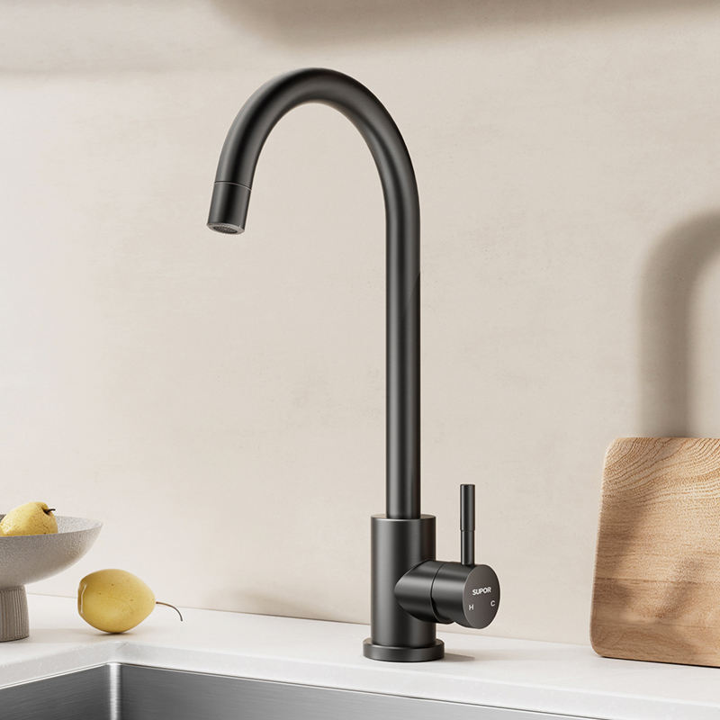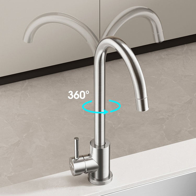 Robinet de cuisine moderne classique en acier inoxydable 304, mitigeur chaud/froid à poignée unique en céramique, design col de cygne, rotation à 360 degrés