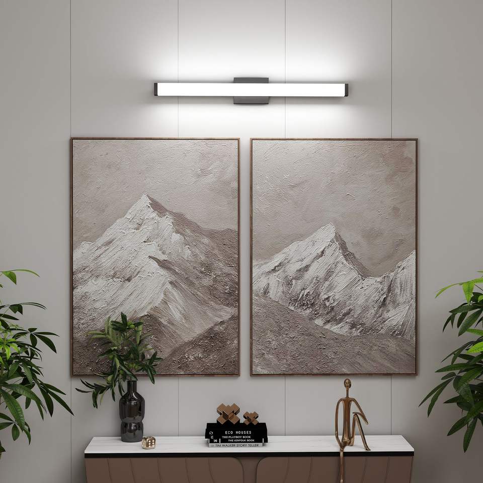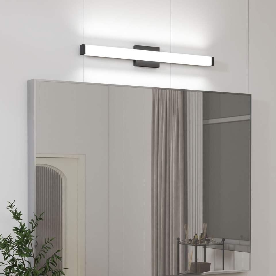 Luminaire de salle de bain moderne de 33 pouces, 18W LED, lumière blanche froide 6000K, miroir de salle de bain noir 6000K