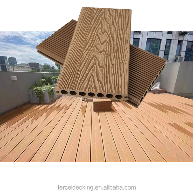 Revêtement de terrasse composite 3D moderne en relief, nouvelle mode, revêtement de sol naturel pour applications extérieures et parcs, techniques brossées