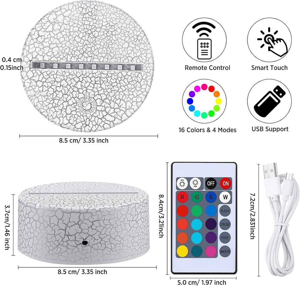 Modern 3D Illusion Anime ABS Lamp Holder 16 Colors LED Electric Night Light USB Cable Remote Control Touch Power