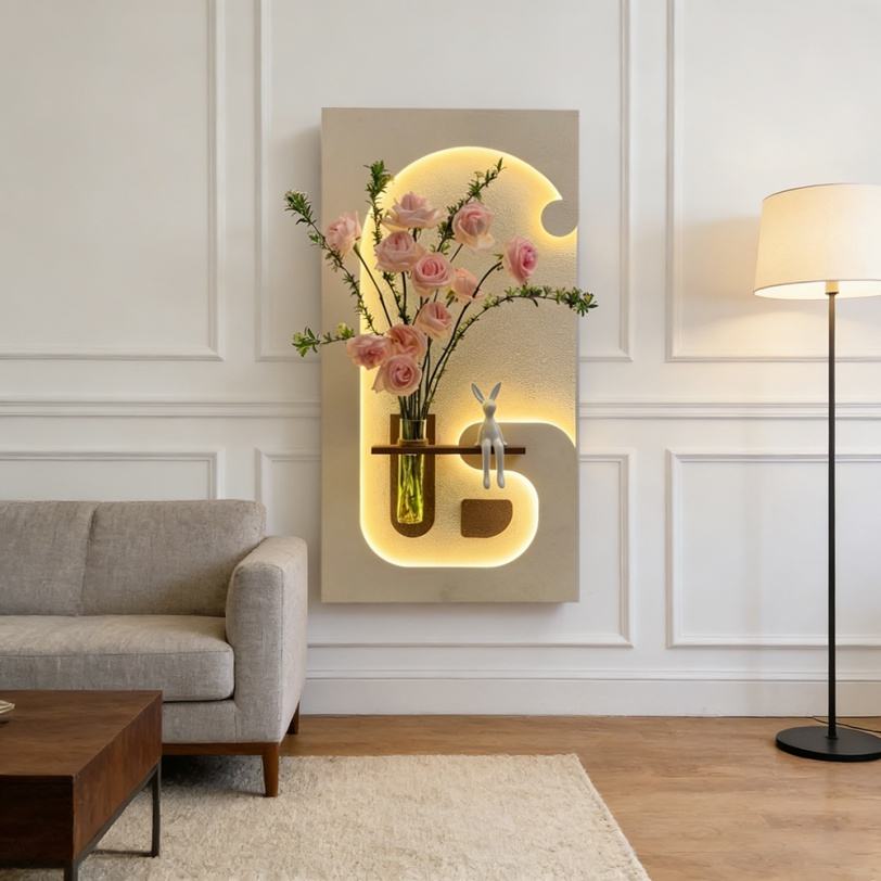 Peinture murale LED 3D moderne, abstraite, avec cadre en grès, faite à la main, décorative, pour véranda, salon, salle à manger