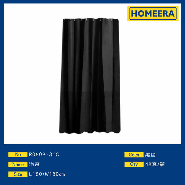 Modern 3D Printed Coastal Design Black 180x180cm Shower Curtain Hooks PEVA Polyester Plastic for Bathroom Decor Wholesale Supply