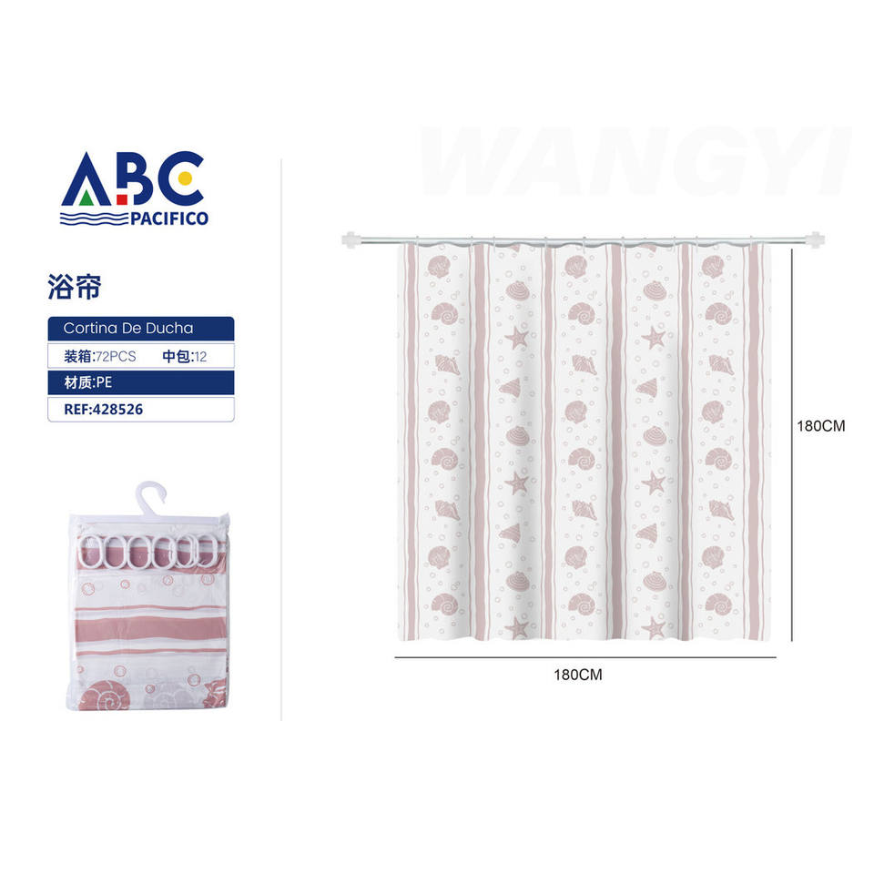 Modern 3D Printed Shower Curtain Classic Design with Digital Printing Made of Polyester and Plastic Includes Hooks