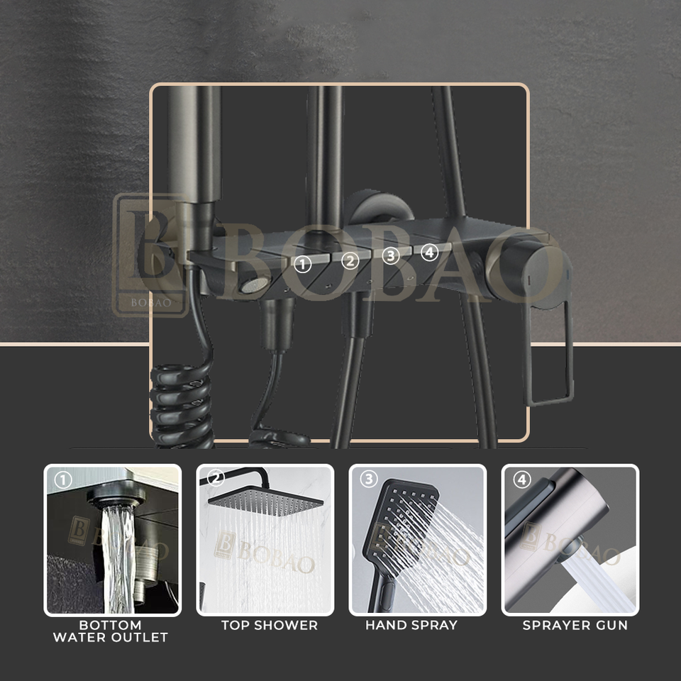 Nom du produit:Système de robinet à clé de piano fixé au mur Ensemble de douche pluie moderne 4 fonctions