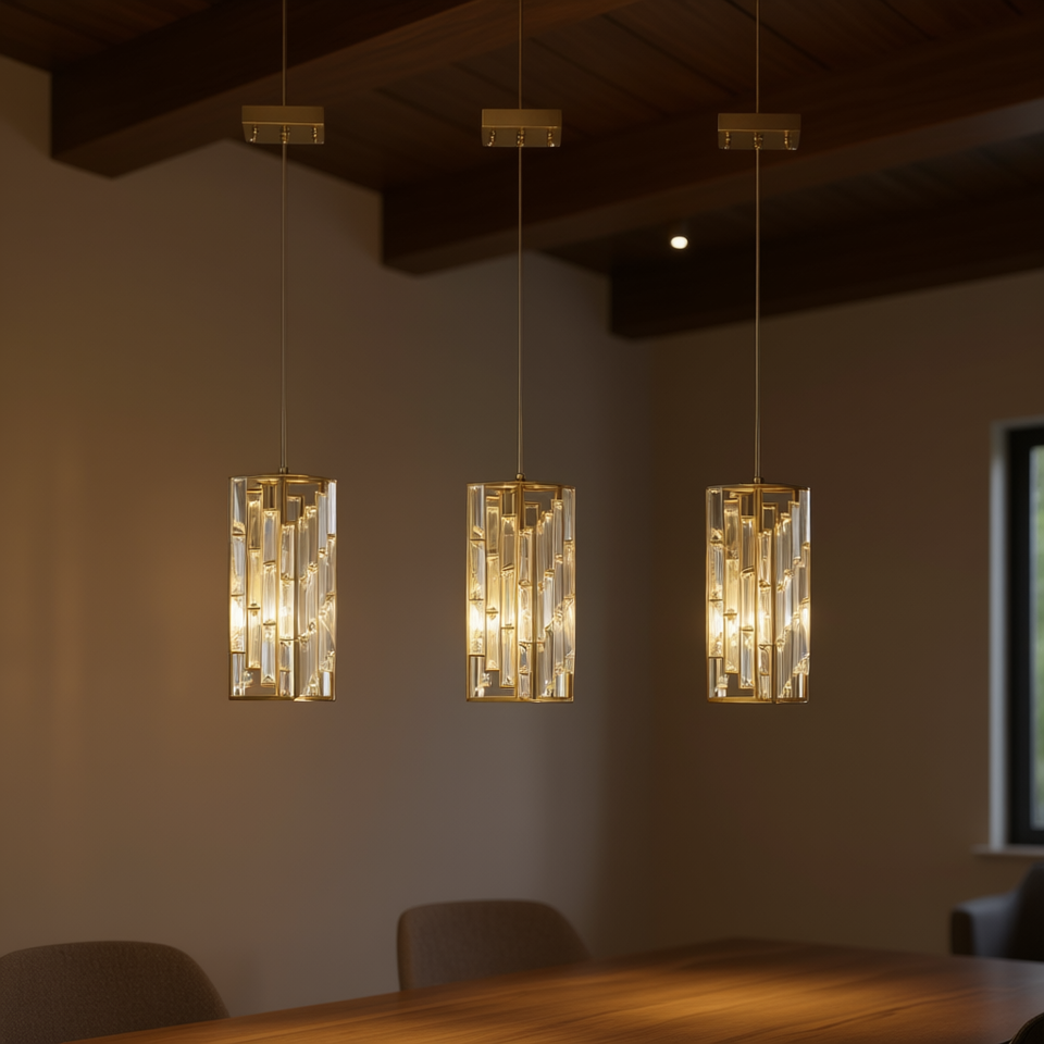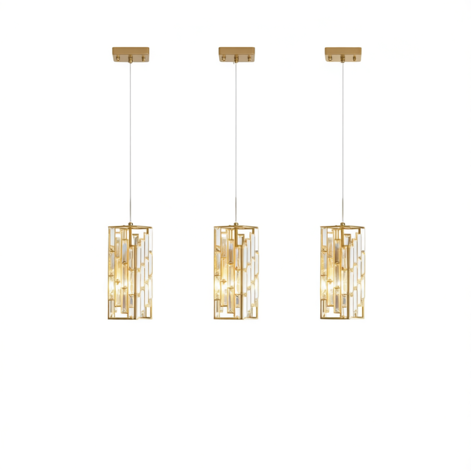 Lustre moderne en cristal de 4 pouces, lot de 3, lampe suspendue réglable au design prismatique, finition dorée pour salle à manger et salon