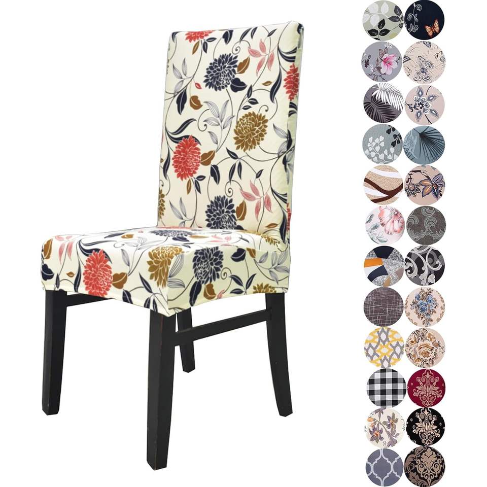 Lot de 4 housses de chaises de salle à manger extensibles modernes Motif de fleurs orange Coupe universelle Polyester doux Occasion de mariage en stock