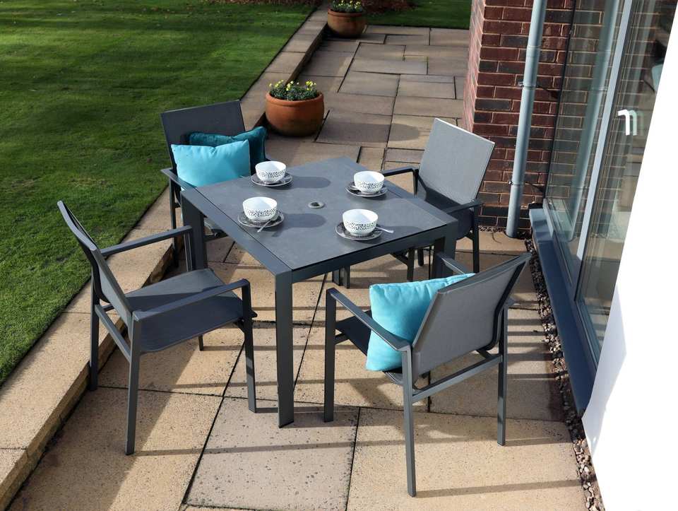 Ensemble de salle à manger de jardin carrée moderne à 4 places Mobilier d'extérieur sophistiqué en PE et en acier pour salle de sport ou patio