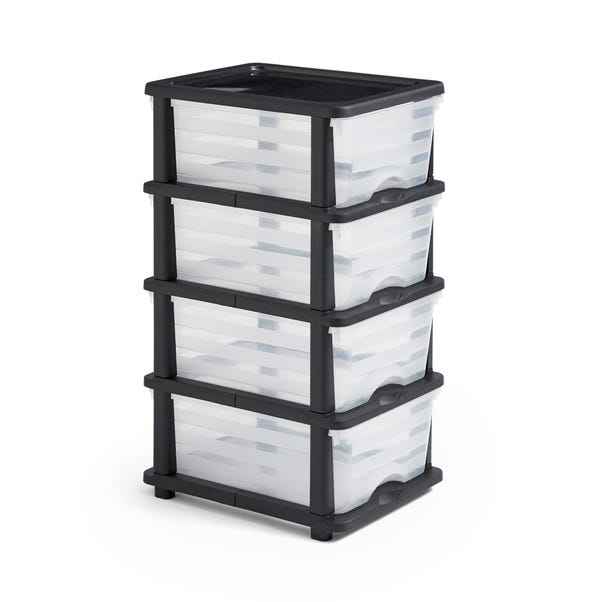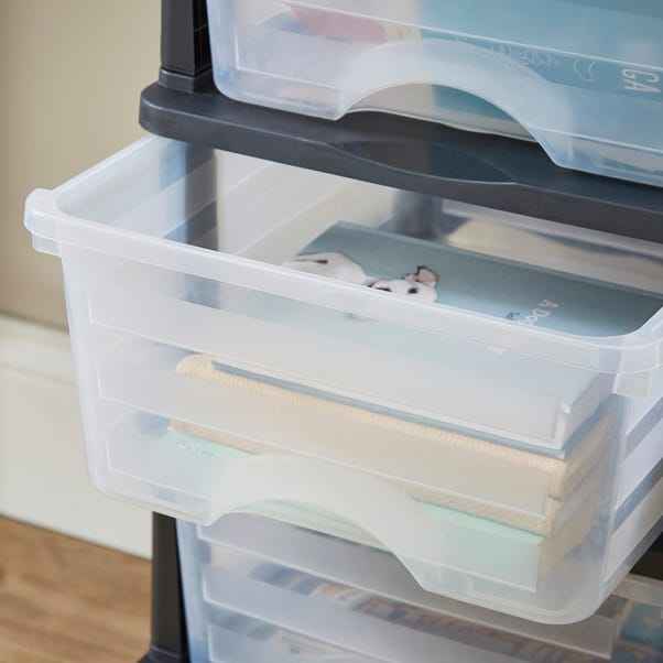Organisateur de rangement moderne en plastique transparent à 4 niveaux, tour à tiroirs sur pied pour aliments, vêtements ou autres articles en PP