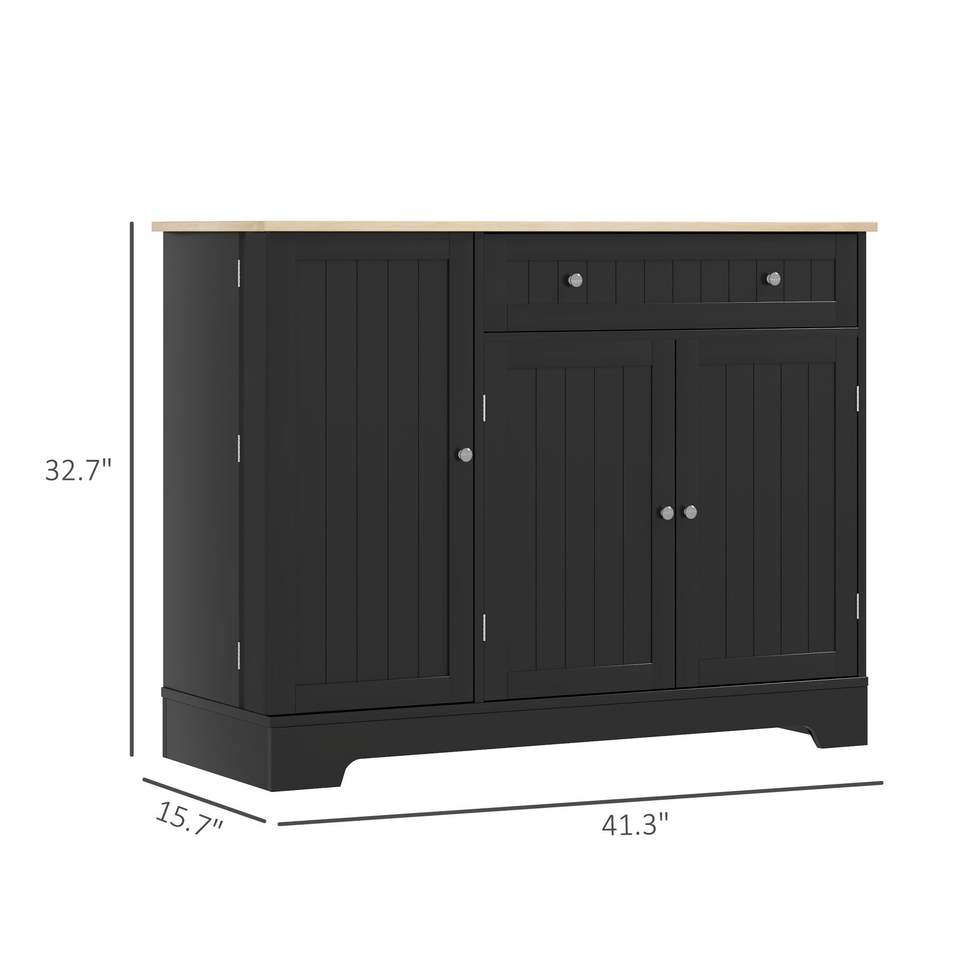 Buffet de cuisine moderne de 41 pouces avec 3 portes et étagère réglable, 1 tiroir, noir, pour salle à manger