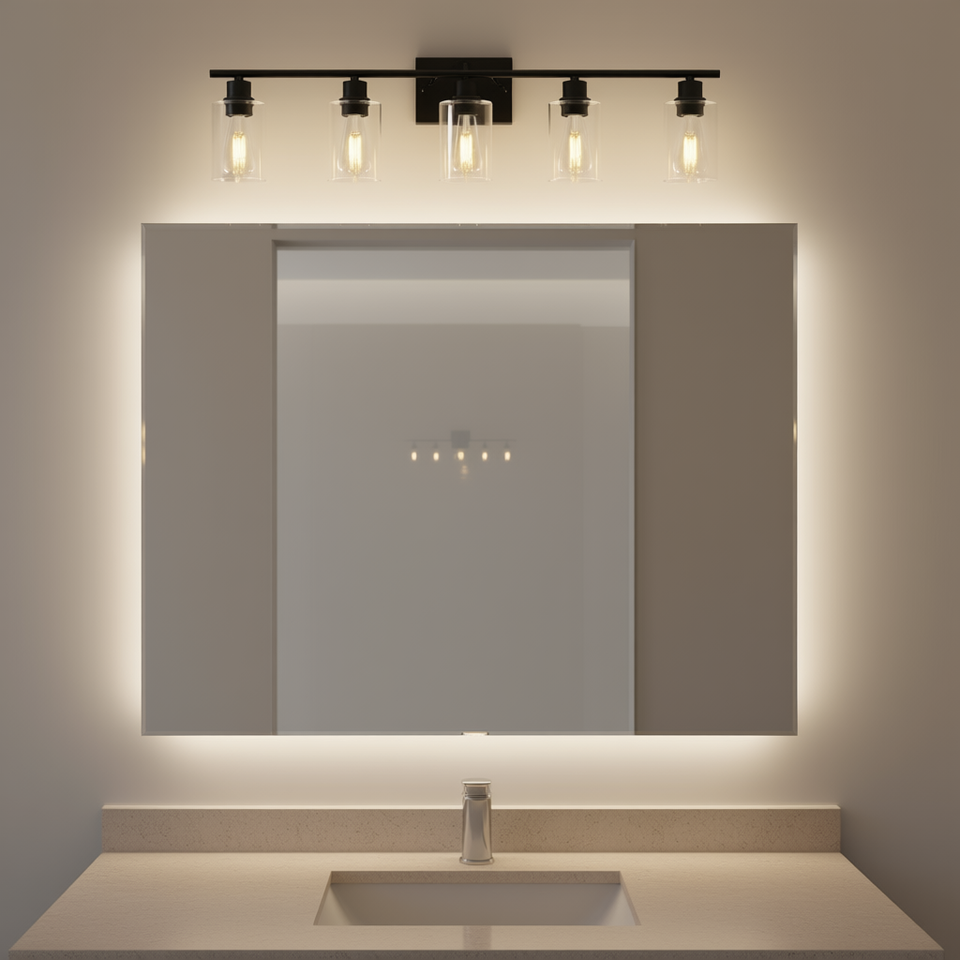 Applique murale moderne à 5 lumières pour salle de bain, 37,1 pouces, blanc chaud, design au-dessus du miroir