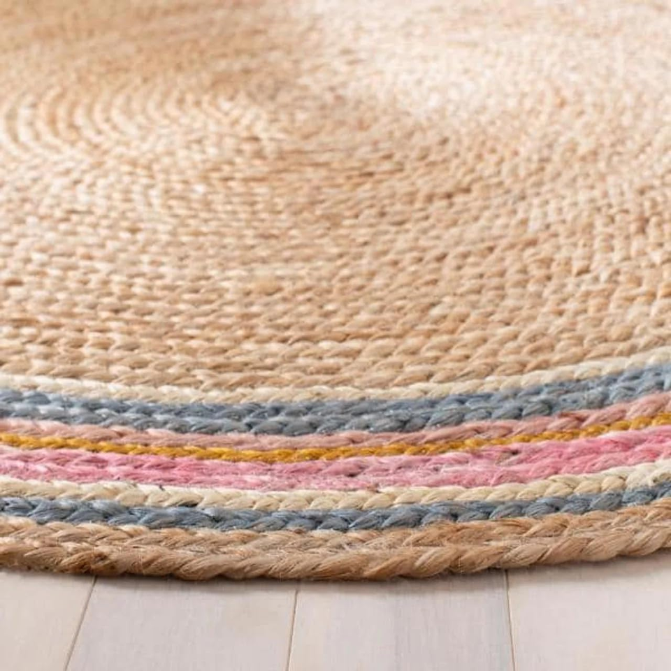 Modern 5 X 5 Feet Reversible Handwoven Jute Rug Natural Fibres Braided Carpet Set for Bedroom Living Room Farmhouse Area Rugs