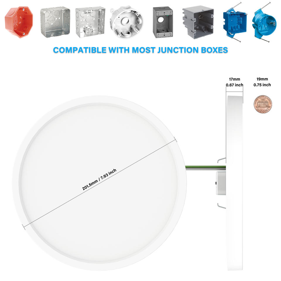 Plafonnier LED rond moderne 5 CCT sélectionnables 15W, encastré ou à poser, pour salon