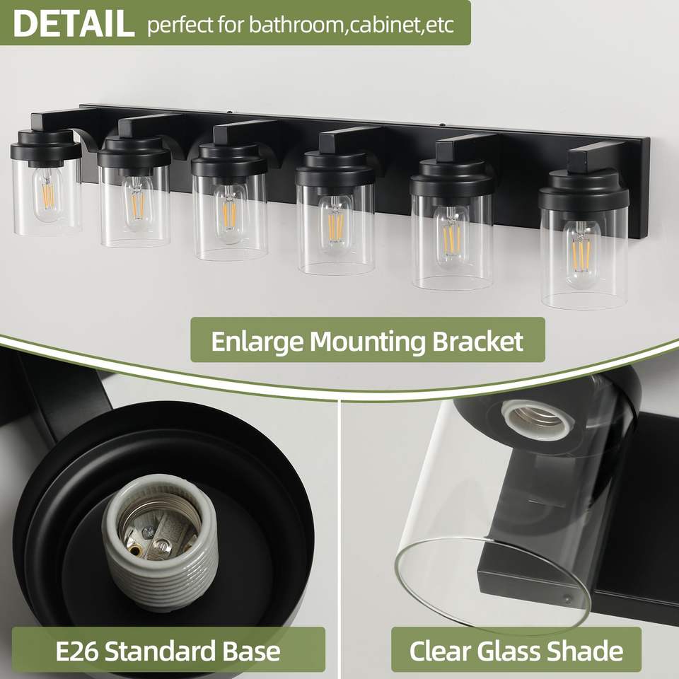 Luminaire de salle de bain moderne à 6 lumières, abat-jour en verre noir et transparent pour chambre à coucher et couloir, ampoules non incluses