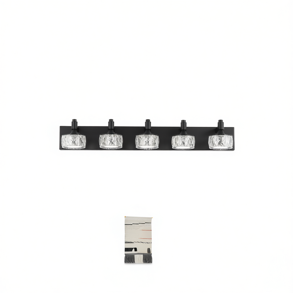 Applique murale moderne à 6 lumières en fer noir avec abat-jour en verre cristal pour salles de bain, décoration contemporaine pour la maison