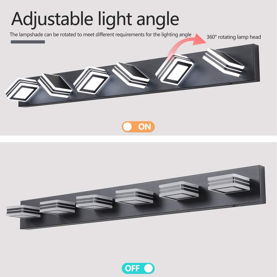 Applique murale de salle de bain moderne à 6 lumières LED, 40 pouces, en fer et acrylique, élégante, à intensité variable, économe en énergie, pour miroir