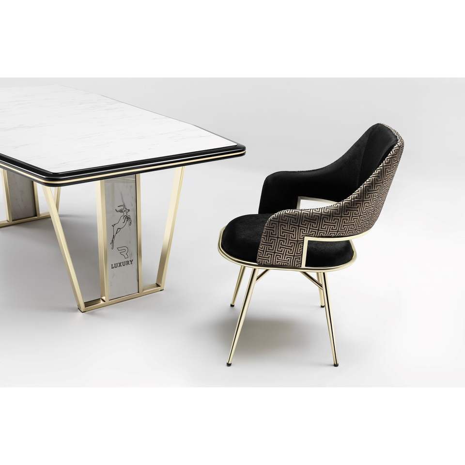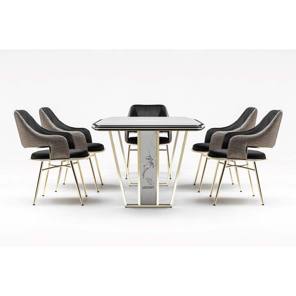 Ensemble de table à manger moderne en métal 6 places avec plateau en bois pour maison, appartement, hôtel, salle à manger