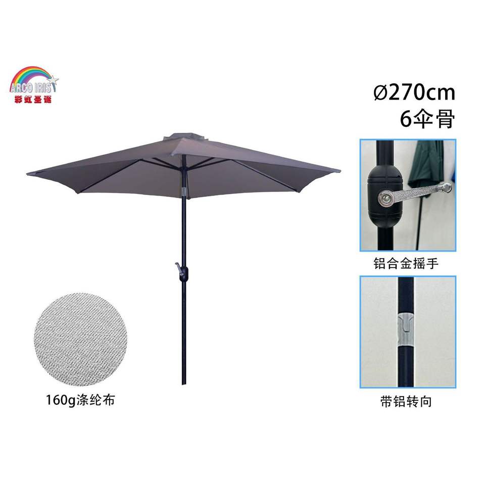 Parapluie de jardin moderne en fer à 6 côtes 270 cm avec poteau en acier inoxydable pour une utilisation en extérieur dans un parc ou un hôtel