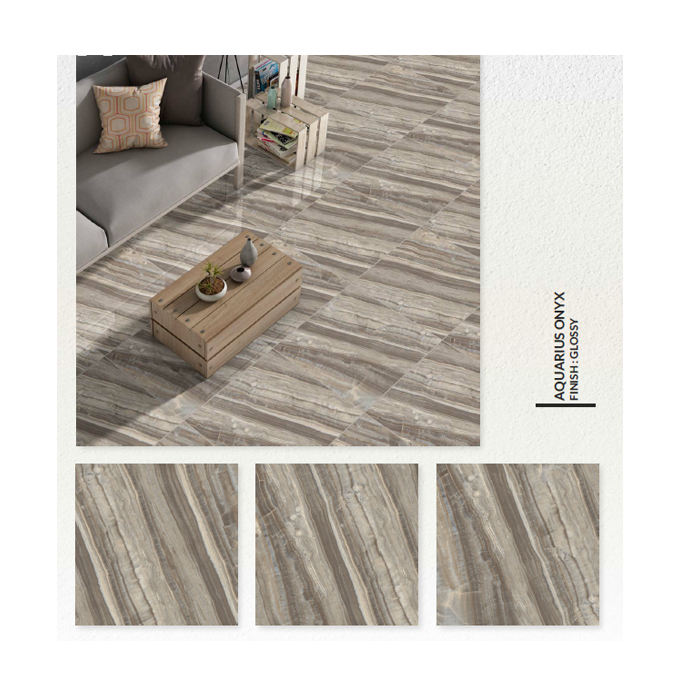 Carreaux de Marbre Vitrifié Moderne 60x60 Fond Marron Porcelaine Émaillée Entièrement Polie pour Salle de Bain Salon Brillant Numérique