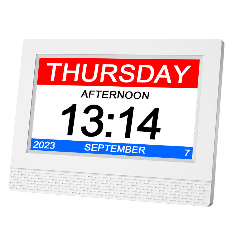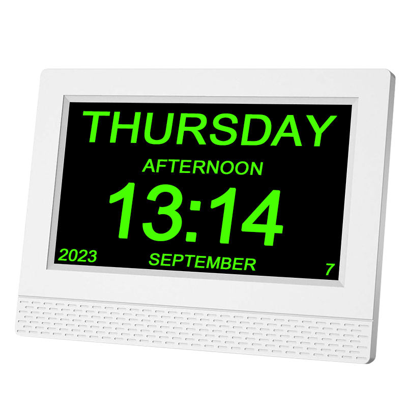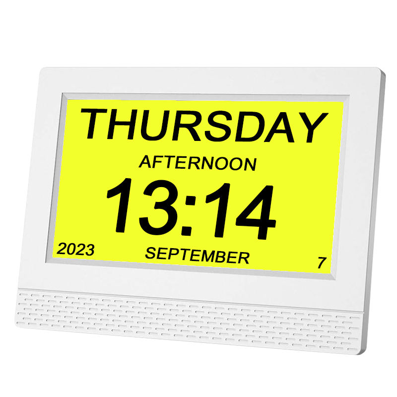 Réveil à calendrier numérique moderne de 7 pouces avec affichage de l'heure par semaine pour les personnes âgées malvoyantes Alzheimer
