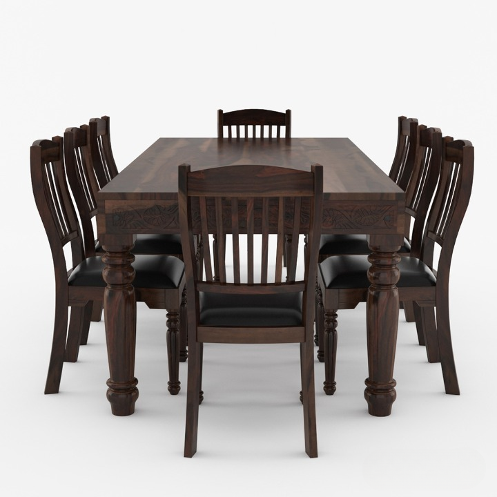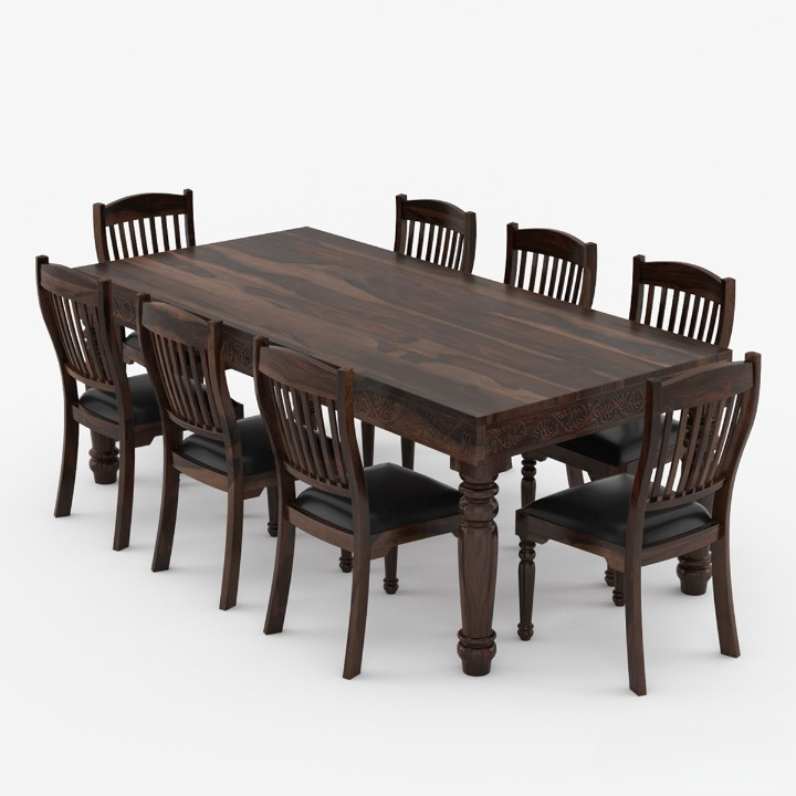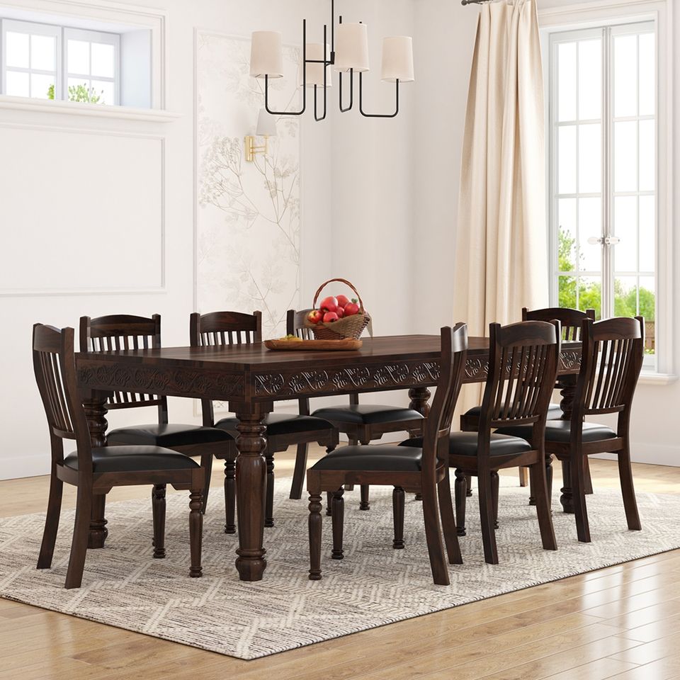 Ensemble de table et de chaises de salle à manger moderne 8 places, sculpté à la main, sièges en cuir, bois de teck massif, pliable, convertible, appartement, hôtel